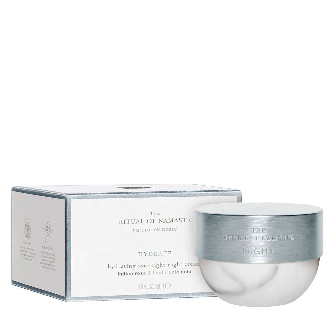 Ritual Of Namaste Hydrating Overnight Cream este o crema gel pentru toate tipurile de ten folosita pentru hidratarea,regenerarea si netezirea tenului.Formula îmbogățită cu acid hialuronic și trandafir indian hidratează tenul în profunzime oferindu-i odihna de care are nevoie pentru a arăta cât mai bine.